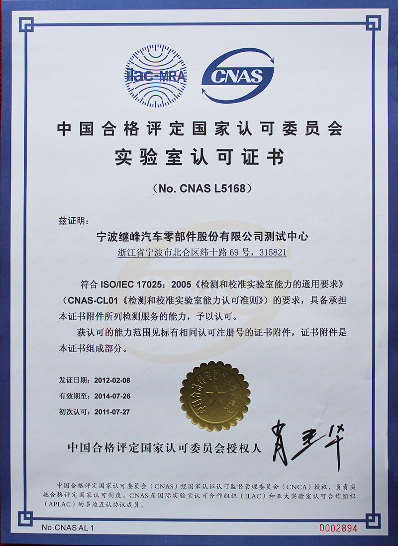 公司實(shí)驗(yàn)室通過國家認(rèn)可委ISO17025國家實(shí)驗(yàn)室認(rèn)可;
